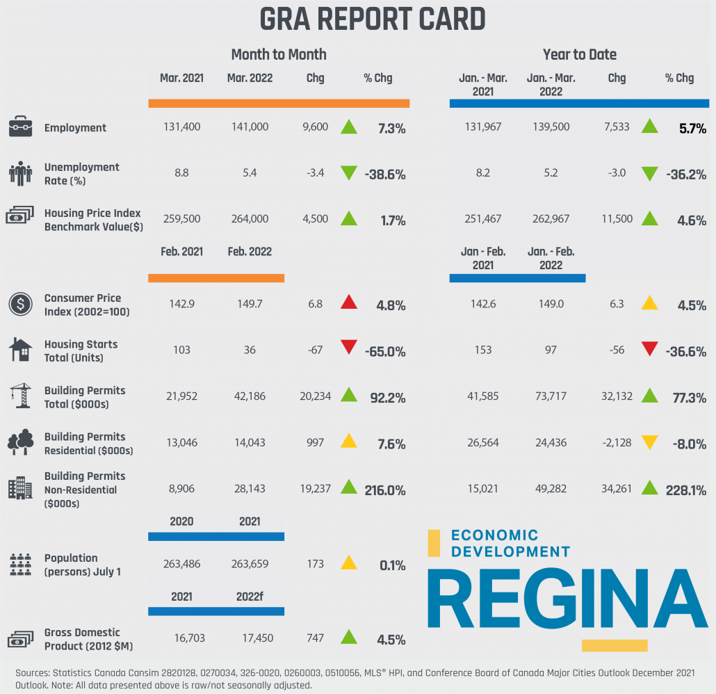 The Economic Report Card is a joint initiative between Economic Development Regina Inc., Praxis Consulting, and SJ Research Services. It provides a concise report of key economic indicators for the Greater Regina Area, updated monthly.