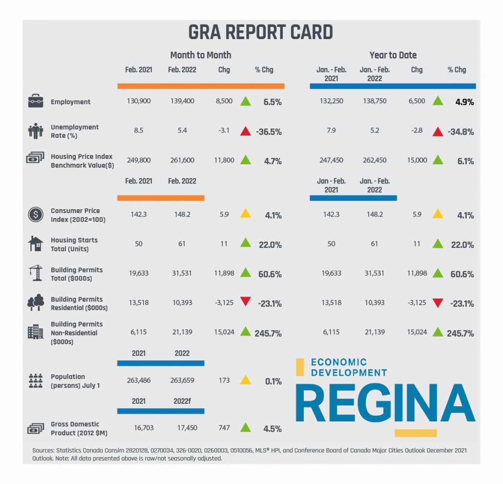 The Economic Report Card is a joint initiative between Economic Development Regina Inc., Praxis Consulting, and SJ Research Services. It provides a concise report of key economic indicators for the Greater Regina Area, updated monthly.