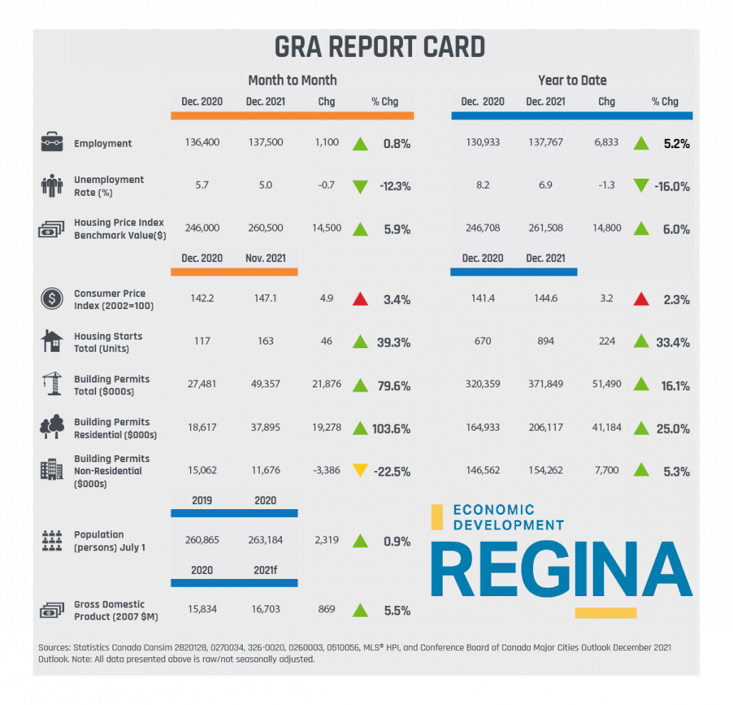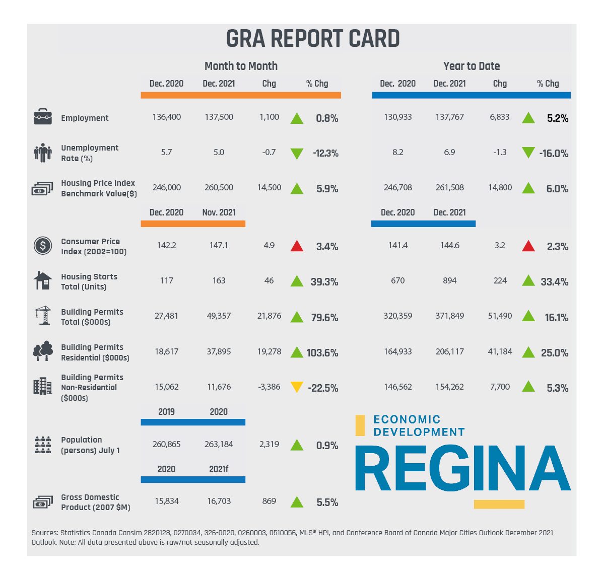The Economic Report Card is a joint initiative between Economic Development Regina Inc., Praxis Consulting, and SJ Research Services. It provides a concise report of key economic indicators for the Greater Regina Area, updated monthly.