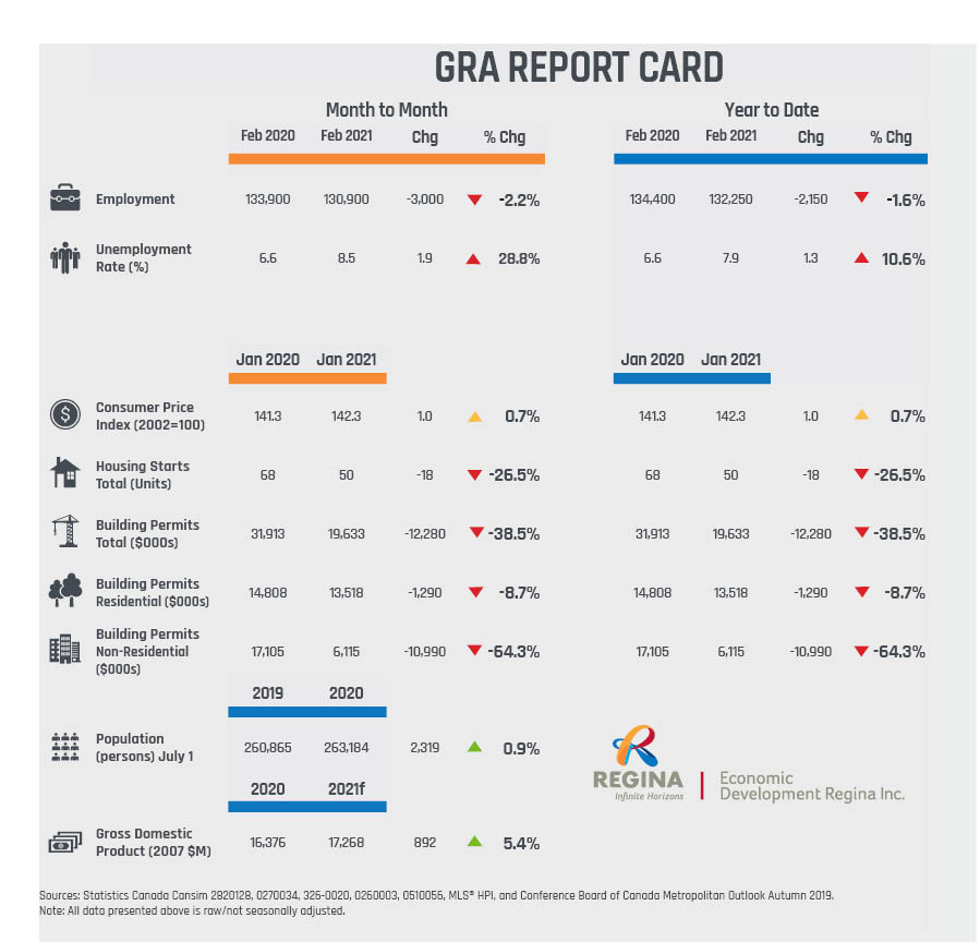 The Economic Report Card is a joint initiative between Economic Development Regina Inc., Praxis Consulting, and SJ Research Services. It provides a concise report of key economic indicators for the Greater Regina Area, updated monthly.