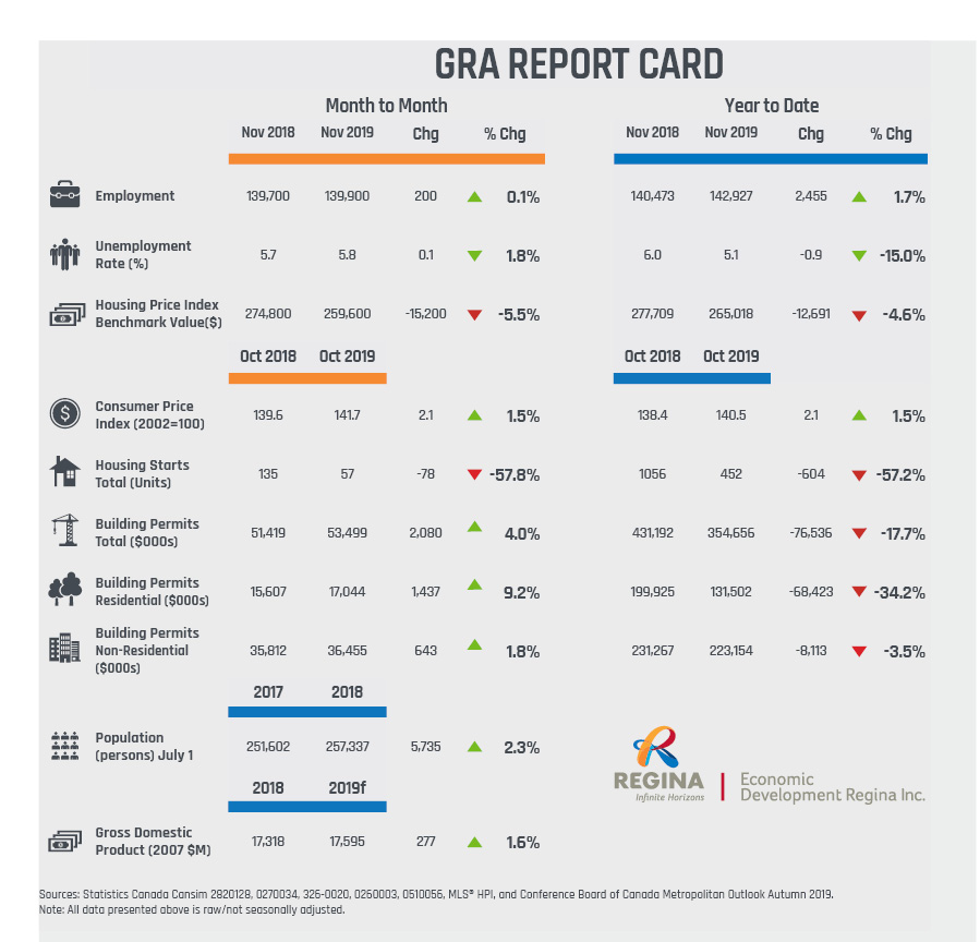 - The Conference Board of Canada forecasts Regina’s economy to post a 1.6 per cent real GDP gain in 2019, following a 1.5 percent increase in 2018.