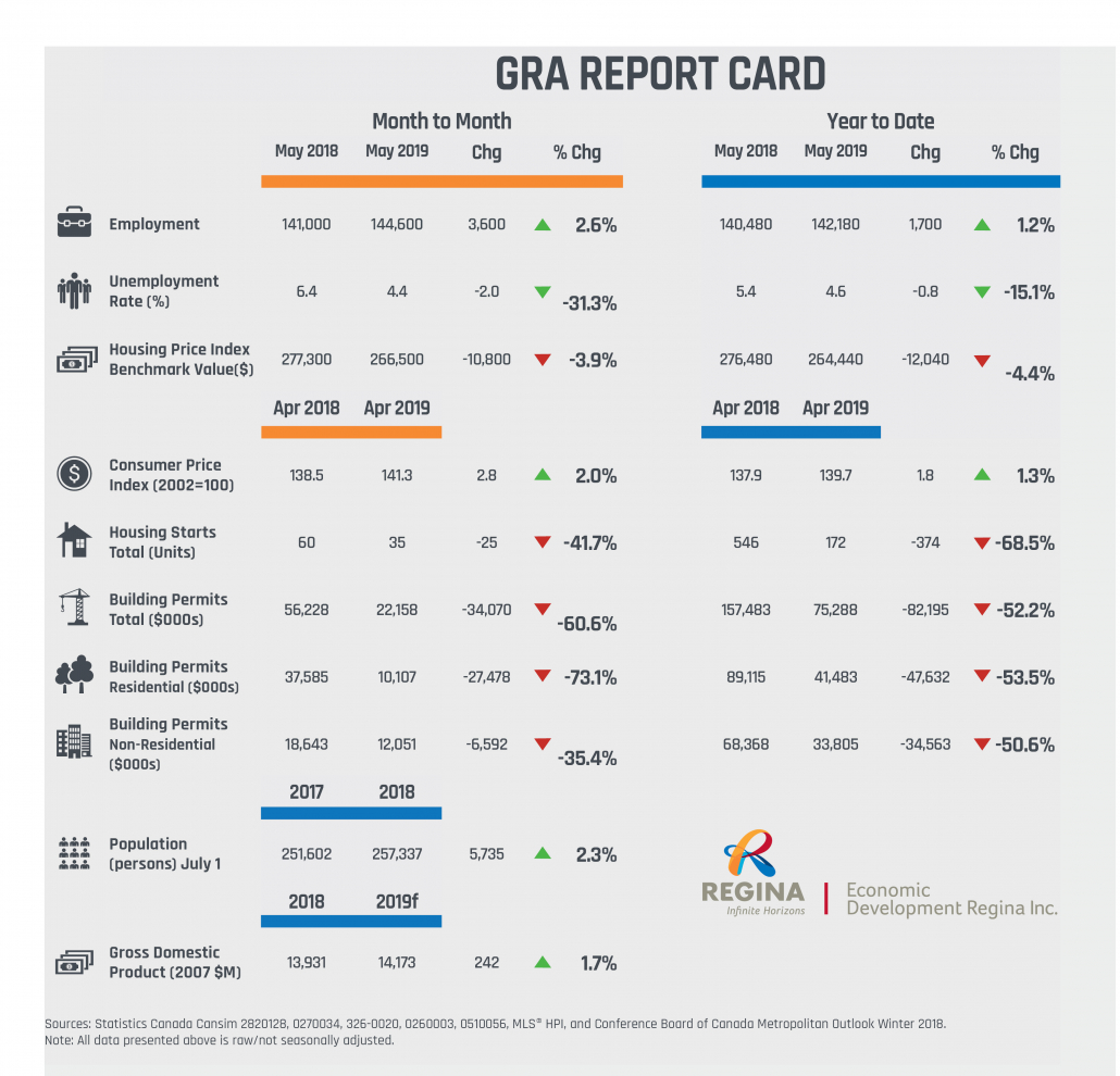 - The Conference Board of Canada forecasts Regina’s economy to post a 1.7% real GDP gain in 2019, following a 1.0% increase in 2018.