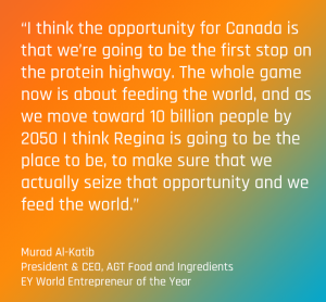 “I think the opportunity for Canada is that we’re going to be the first stop on the protein highway,” remarked Al-Katib. “The whole game now is about feeding the world, and as we move toward 10 billion people by 2050 I think Regina is going to be the place to be, to make sure that we actually seize that opportunity and we feed the world.”