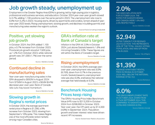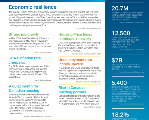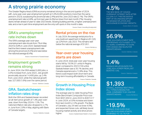 (Regina) With strong economic, employment and population growth, a stable housing market, and promising new sectors, the Greater Regina Area’s (GRA) economy is expected to achieve a solid “B+” grade…