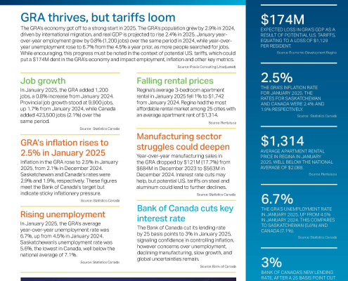 (Regina) The Greater Regina Area (GRA) and Saskatchewan could face significant economic challenges if the United States imposes a 25% tariff on Canadian imports, as threatened by President-elect…